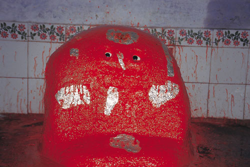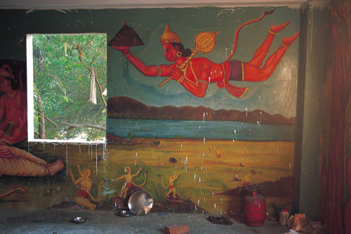 ארוכה ברגל. אל הכפר הקטן הגעתי רק לאחר שירדה החשכה. התקשיתי למצוא אנשים שמדברים אנגלית ונאלצתי להסתדר בעזרת ההינדית המועטה שבפי. לכל מקום שהלכתי ליוו אותי מבטים בוחנים וסקרנים. ניכר היה שתושבי הכפר לא ראו "אנגרזי", תייר מערבי, זה שנים רבות. לפי האגדה המקומית, עד לפני אלף שנים היה איזור הכפר שרוי באפלה ואפוף כוחות רשע. יער עבות כיסה את האיזור ושוטטו בו חיות טרף, שודדים ורוחות רעות. איש אחד, מוֹהַאנט קישוֹר שמו, שהתגורר בסמוך לאיזור, חלם שבלאג'י מצווה עליו ללכת לשם. הוא התעורר והלך למקום, אלא שבהגיעו אחז בו הפחד והוא סב על עקביו ונמלט. אחרי חלום נוסף התעורר וראה דרך המתמשכת ממשכבו אל תוך האפלה, מוארת לכל אורכה בנרות משני צידיה. הוא קם וצעד בה, והיא הוליכה אותו אל המקום שממנו כה פחד. כשהתקרב, שמע קולות של צבא גדול, תרועת פילים, רקיעת פרסות, צהלות סוסים ושקשוק חרבות. כשהגיע למרגלות ההר, למקום שבו ניצב היום המקדש הראשי בכפר, נגלה מולו הצבא העצום. מוהאנט קפא על עומדו. שלושה צלמי אלים עלו מתוך האדמה למרגלות ההר שלידו ניצב. המרכזי שבהם היה צלמו של בלאג'י. ראש הצבא עצר את חילותיו, ירד מסוסו, השתחווה לפני פסלו של בלאג'י ושב כלעומת שבא כשכל צבאו בעקבותיו. מוהאנט חזר מבועת לכפרו, אבל למרות תשישותו לא הצליח להירדם. בחזיונו ראה את הפסלים ושמע את בלאג'י מצווה עליו: "קום ושרת אותי!". לדרישה מפורשת כזו לא יכול היה מוהאנט לסרב. כשחזר למקום באור יום, לא היה זכר ליער העבות, לאפלה, לשודדים ולחיות הטרף. רק הפסלים ניצבו במקום, וסביבם נשמעה מוזיקה מופלאה. מוהאנט הקים סביב הפסלים חדר תפילה קטן, וחזר לכפרו כדי לספר לשכנים את קורותיו. בלהט האמונה הצליח לשכנעם לבוא אחריו, לעבוד את בלאג'י ולסייע לו להקים מקדש לכבודו. כך הפך לכוהן המקדש הראשון ולמייסד הכפר. בזכות כוח אמונתו של מוהאנט, הצהיר האנומן כי במקום זה יתגלה במלוא כוחו, ולכן, מסבירים המקומיים, נרפאות במקום תופעות כמו טירוף ומחלות נפש, הנגרמות על ידי רוחות תועות וכוחות רשע. כך הפכתי קדוש למחרת הגעתי לכפר והעפלתי למקדש ההר, טין פהאר באלה באב (Tin Pahar Bale Bab) שמו. במקדש הזה עברתי את אחד האירועים המוזרים ביותר שקרו לי אי פעם. אין לי שום הסבר למה שהתרחש מאותו זמן ואילך. אני כבר לא מנסה למצוא הסבר כזה.
