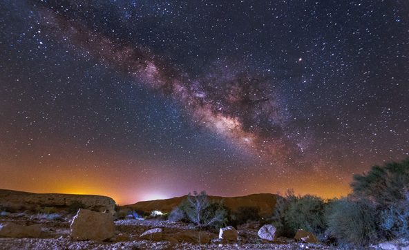 ומה אצלנו? צפייה בכוכבים בישראל כשנמצאים בתל אביב המוארת קשה להאמין שבארץ שלנו יש מקומות מספיק חשוכים לצפייה בכוכבים, אבל הנגב מספק לא מעט מקומות שכאלה ולמעשה הוא אחד המקומות המצוינים בעולם לצפייה בכוכבים. גם ברמת הגולן אפשר ליהנות משמיים חשוכים, למשל בהר שיפון. במרכז, בשל האור, היצע המקומות לצפייה דל במיוחד, אבל בהר טייסים, פארק בריטניה ומערות חזן יש שמיים חשוכים למדי ואפשר לראות את שביל החלב. שביל החלב בבורות לוץ | צילום: יונתן אליכיס