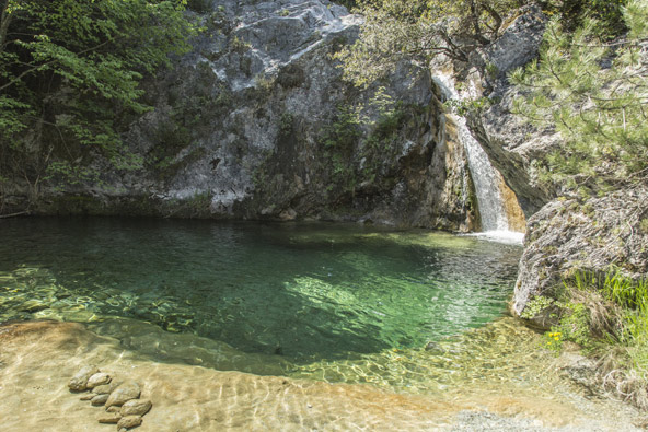 שני מסלולי הליכה נוחים למדי, שאינם מיועדים למיטבי לכת: מסלול אחד מוביל לאיה קורי (Agia Kori) , "הבת הקדושה" והשני, שיתואר בהמשך, בקניון אניפאה. באיה קורי הלכנו בשביל מסומן למפל, בריכה וגשר מעץ – גן עדן קטן. מים צלולים להפליא, בגווני ירוק שונים, יוצרים בריכה ומפל. מיד שכחנו את כל הלחצים ונרגענו.