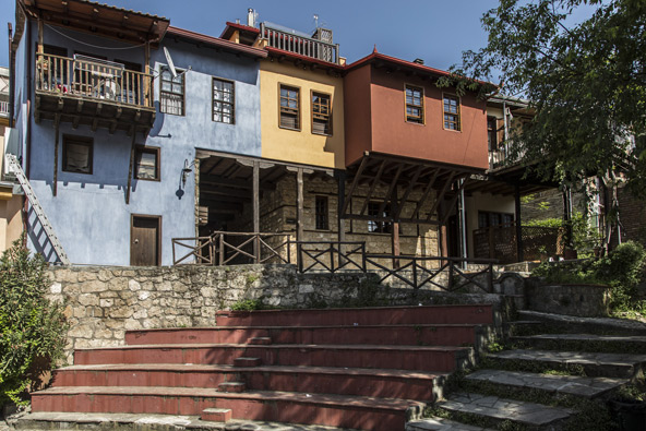 הכפר הציורי פנטלימון, שבתיו גולשים במדרון ירוק