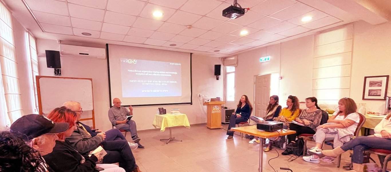 פברואר, עדיין חורף. נפגשנו לריטריט בצהרי יום חמישי באירוח הכפרי שבקיבוץ דגניה ב'. מזג האוויר הנעים, השמש, השמיים הכחולים, הנוף שבדרך, הדשא הירוק, העצים המלבלבים והגינות המטופחות השרו תחושה של הנה האביב הגיע. את פנינו קיבלו המנחים/ המורים/ המדריכים/ המלווים/ החונכים/ המובילים יוסף ואלה (בהמשך, כשנבין אולי מה בדיוק אנחנו עושים פה, נבחר מהרשימה הנ"ל את הגדרת התפקיד שלהם) וגם בר מלא כל טוב, כריכים, עוגיות, ירקות ופירות, שתייה חמה וקרה וממתקים. התכנסנו באולם, בינתיים זרים אבל אחרי קבלת הפנים הזו לא לזמן רב, אשר עניינם המשותף הוא ללמוד ולהכיר את החוויה החוץ גופית. באולם המתינו לנו הכיסאות כשעל כל אחד מהם ערכה מפנקת ומועילה: חוברת הדרכה, מחברת, כלי כתיבה, שמיכה לתרגולות, כיסוי לעיניים ואטמי אוזניים.
