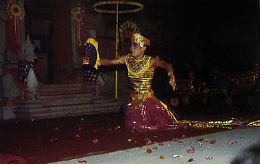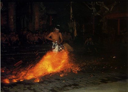 | גברים מעבירים גחלים לוהטות על גופם; ילדות נעות בטראנס; גברים רוקדים ומתייפחים בעוז; כל אלה הם חלק מאמנות המחול של באלי. בבאלי, כמו בג'אווה, מתאר הריקוד קטעים באפוסים ההודיים המהבהראטה והרמאיאנה. בשני האיים מופיעים שני סוגי הריקוד – האָלוּס העדין – המזוהה בעיקר עם האליטה החברתית בג'אווה, המדגיש את האיפוק והשליטה, ובמהלכו נשארים הרקדנים קרובים לאדמה ורגליהם כמעט צמודות זו לזו – והקָסָאר הגס – המבוצע על ידי גברים, המייצגים שדים ורוחות, מפלצות ולוחמים גסי רוח הנוטים להתפרצויות כעס. רקדני הקסאר מנצלים שטח ריקוד רחב יותר, מניפים את רגליהם, וכל תנועה שלהם מודגשת, חדה ורחבה. לעומת ג'אווה שבה שליטים שני סגנונות אלה, בבאלי הריקודים מגוונים יותר. אבל ההבדל המהותי בין שני האיים טמון בסגנון הריקוד: בבאלי הוא מלא הפתעות, נמרץ, חזק ומהיר יותר, ותלבושות השחקנים מרהיבות יותר. ידידי מג'אווה הסביר כך את ההבדל: "הריקוד הג'אוונזי מתאים לרנסאנס. הוא קלאסי, מארגן את החלל בדרך גיאומטרית, מלא הרמוניה וחסר מהפכות ותמורות. יש בו התמקדות בדקויות, בגוונים, באור ובצבע, ורגישות בתיאור פרטים. ואילו הריקוד הבאלינזי מתאים לבארוק: יש בו נטייה לצבעים עזים, לתמונות סוערות, רבות תנופה ותנועה. הוא ריקוד מוגזם, עז רושם ומסעיר, מאופיין בתנועה רחבה, ברגשיות ובחושניות". ריקודי קודש וחול הריקוד בבאלי, כמו אמנויות אחרות, הוא כלי לתקשורת בין הקהילה לאלים (ראה גם מאמרו של ניסים קדם בגיליון זה). הריקוד מענג את האלים, ובעזרתו אפשר להרחיק את הכוחות השטניים. כל רקדן מתפלל לפני הריקוד להשראה – טקסו (TAKSU) – וזו הופכת את הריקוד לחוויה מאגית. כדי לעורר את ההשראה, נוהגים הרקדנים בריקוד המסכות, למשל, לישון עם המסכה. מאות סוגי מחול יש בבאלי: החל מריקוד טראנס של נשים העומדות במקומן ומניעות רק את צעיפיהן, וכלה בריקודים מסובכים ומורכבים וביצירות מודרניות, המיועדות לתיירים המערביים. ב־1971 בגלל החשש שהריקודים הקדושים יהפכו למופעים תיירותיים, הוחלט לחלק את הריקודים לשלוש קבוצות על פי דרגות קדושה: ריקודי הוואלי (WALI), ריקודי הבבאלי (BEBALI) וריקודי הבאלי באליאן (BALIH BALIHAN ).