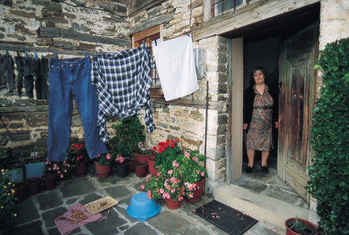יורגו קאלאמאטיאנוס היה הזורבה שלי. נפגשנו באי קורפו (Corfu), כך באקראי, בפתח גן הילדים הבריטי בעיר היחידה באי, סמוך לטיילת החוף. אני, הזר, שבא להתנסות בחיים על אי והוא, בן פיראוס (Pireas), שהתחתן עם תיירת גרמנייה והתיישב במקום. היתה זו שעת צהריים חורפית. עמדנו ליד הדלת והסתכלנו על הילדים שסיימו לשיר במעגל ונופפו לנו במרץ. בחוץ ירד גשם חסר מעצורים. נחלי מים שטפו על כביש האספלט בדרך אל הים והרי אלבניה הסמוכים, בצדו השני של מצר המים הצר, נחבאו מאחורי שמיכת ערפל עבה. פה ושם נשמע רעם מתגלגל ומיד אחריו נחצו השמים השחורים בברקי אור זוהרים. הצטופפנו בכניסה, מנסים להימלט מטיפות המים הגדולות ששטפו מלמעלה ללא מעצורים. "אני אבא של רומן", פנה אלי בחיוך, "ואתה?". אני? אני אבא של סיר. כן – סיר. כך קראו המקומיים לבתנו בת הארבע, מאחר שהיוונים אינם יכולים לבטא את האות שי"ן. "שיר" הפכה ל"סיר" ובהיגוי של הגננות האנגליות: "שיאה". "אני יורגו", אמר. "מאיפה אתם? מישראל? למה שלא תבואו אלינו מחר? בואו", אמר. "תביא את אשתך ואת סיר". הבטתי בו. עיניו זהרו בידידות. "מחר?", שאלתי, מעכל את ההיכרות המהירה. מחר, מחר. ככה אחרי הצהריים, בשעה שמונה. הוא מסר לי כתובת, לקח את הבן בידיו ופנה ללכת. להתראות, ידידי, קרא בין זרמי המים. אל תשכח — בשמונה. יאסו! בשעה היעודה טיפסנו ברכבנו אל הכפר הסמוך, חוצים את הגשר הקטן בכניסה, שמתחתיו זרם פלג מים שוצף, ופנינו לדרך צרה. עד מהרה הותרנו את בתי הכפר מאחור, מטפסים על גבעה מיוערת בדרך תלולה וקצרה. העלייה הבוצית הסתיימה לאחר כמה עשרות מטרים בעיקול חד וצר להחריד שהתרחב ימינה והפך לרחבה בפתח בית לא גדול. יצאנו מהרכב, ניצבים על רום גבעה, מול הבית הבודד המשקיף לנופים סביב והוא מוקף משני עבריו בחורש עצים ירוק. שקט שרר מסביב. מן הרחבה טיפסו כמה מדרגות אל מרפסת קדמית שהסתיימה בדלת שהובילה, כך למדנו, למטבח. באותו רגע יצא יורגו לקראתנו, וחיבק את כולנו בעוז כאילו היינו קרובי משפחה שלא ראה זמן רב. היתה זו הראשונה מתוך סדרת פגישות הזויות ומופלאות עבורי. מן המטבח נפתח פתח אל סלון לא גדול שאח מבוערת בגזעי עצי זית חיממה את חללו והטילה על רצפתו וקירותיו | | כפריים במצובו. ליוונים יש לא מעט רגשי נחיתות מול העולם המשתנה מול עיניהם במהירות שאינם רגילים בה. בצד מה שמוכר כחיבה לזר ובצד הכנסת האורחים, מתעוררים גם רגשות תסכול, על כך שהעולם הישן והמוכר כל כך משתנה ונעלם | צילום: דפנה טל |