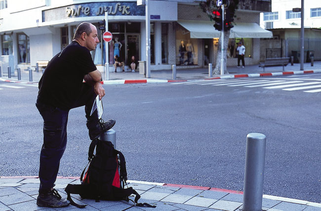 | שמעון לב ברחוב דיזנגוף בתל אביב, לפני הפגישה בבית קפה, אם השביל כבר עובר בתל אביב, אז כדאי לנסות ליהנות מזה |