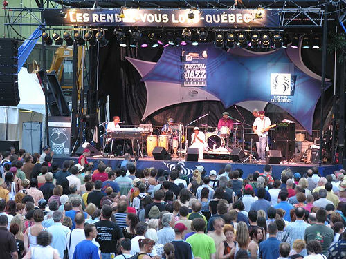 כמה מאתרי הטבע הנפלאים של האזור נמצאים ממש בסמוך לערים הגדולות. כאלה הם, למשל, מפלי מונטמורנסי (Montmorency Falls), שמרוחקים כעשרה קילומטרים מקוויבק סיטי, ונופלים מגובה של כשבעים מטר. אתר נוסף בסמוך לקוויבק סיטי הוא האי אורלינס (Orleans) ששוכן על נהר סנט לורנס, ובו משקים חקלאיים, יערות מייפל וכפרים קטנים ומקסימים. קצת יותר רחוק, במרחק של כשמונים קילומטר מקוויבק סיטי, נמצא אזור שארלבואה (Charlevoix), עם הרים מושלגים (שבחורף מגיעים אליהם גולשים רבים); יערות של אדר, ארזים, ואשוחיות; וכמובן נהר סט לורנס, שגדותיו משובצות בכפרים קטנים וציוריים. אחת מחוויות הטבע שאסור להחמיץ בקוויבק היא שייט צפייה בלווייתנים בנהר סט. לורנס. חברות רבות באזור קוויבק מציעות סיורי צפייה בלווייתנים בין החודשים מאי לאוקטובר, והסיכוי לראות לוויתן במהלך השייט גבוה במיוחד. 4. בגלל הפסטיבלים בקיץ, אחרי חורף ארוך וקר, כשמזג האוויר נעים והשמש זורחת שעות ארוכות, תושבי מחוז קוויבק אוהבים לצאת החוצה ולחגוג. פסטיבלים ואירועי קיץ מתקיימים בכל המחוז, אבל עיר הפסטיבלים של קוויבק היא ללא ספק מונטריאול. בחודשי הקיץ מתקיימים בעיר אינספור פסטיבלים, שמקנים למבקרים בעיר את התחושה של חגיגה בלתי פוסקת. הפסטיבל המפורסם ביותר של מונטריאול הוא פסטיבל הג'אז שמתקיים במשך 11 ימים בסוף יוני ותחילת יולי, וכולל הופעות של טובי אמני הג'אז בעולם לצד מאות הופעות שמתקיימות ללא תשלום תחת כיפת השמיים. פסטיבל הג'אז מהווה את יריית הפתיחה לקיץ של פסטיבלים ואירועים ברחבי העיר. המגוון כולל גם את פסטיבל מונטריאול לאמנויות הקרקס, פסטיבל מרוץ סירות הדרקון, פסטיבל האופנה והעיצוב, פסטיבל הצחוק, התחרות הבינלאומית לזיקוקי דינור שמאירה את שמי העיר בשלל צבעים, התהלוכות החגיגיות של יום קנדה, פסטיבל הטנגו הבינלאומי, פסטיבל למוזיקה אלקטרונית, שבוע הגאווה, פסטיבל רגאיי, פסטיבל מוזיקה אלקטרונית, פסטיבל כדורים פורחים והרשימה עוד ארוכה.  הופעה בפסטיבל הג'אז של מונטריאול | צילום: stevebr, flickr