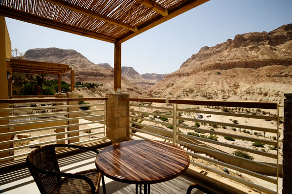 מלון עין גדי, קיבוץ עין גדי המלון שוכן בליבו של הגן הבוטני היפהפה בקיבוץ עין גדי ומציע הרבה שלווה, יופי ואווירה מדברית. במלון יש כמה סוגי חדרים והמחירים בהתאם – חדרי סטנדרט אשר שוכנים בלב הגן הבוטני במבנים חד קומתיים ונהנים מיציאה לגינה, וחדרי בוטיק מפנקים בכמה רמות, שבהם ראוי לציין את חדרי הדלוקס המרווחים והיוקרתיים עם המרפסת שפונה ישירות לנחל ערוגות. במלון יש ספא מפנק, ספא סינרגיה, שבו בריכה פנימית מחוממת עם מי ים המלח, בריכה חיצונית של מים מתוקים המחוממת בחורף, סאונה יבשה וחמאם תורכי. אורחי המלון נהנים גם מכניסה חופשית לחמי עין גדי.  מרפסת של חדר דלקס במלון עין גדי משקיפה על נחל ערוגות