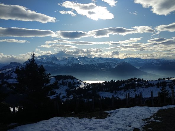 מויצנאו עולים להר ברכבת גלגלי שיניים שמטפסת בעלייה התלולה למעלה. הנוף הנשקף מהרכבת עוצר נשימה. מצד אחד רואים את אגם לוצרן וההרים המושלגים שמסביב, ומהצד השני יער מלא קסם עם פלגי מפלים ומפלים. מצאנו את עצמנו מזיזים את הראש מצד לצד, מתקשים להחליט לאיזה כיוון להביט. עם התקדמות הנסיעה, הנופים הפכו למושלגים יותר ויותר. הרכבת עצרה בכמה תחנות בדרך, ואנחנו ירדנו בתחנה האחרונה, Rigi Kulm, ממנה נשקף נוף מרהיב באמת. תצפית פנורמית על כל הפסגות המושלגות של האזור ועל אגם לוצרן, שניבט מבעד לענן והיה נראה כאילו נלקח מתוך ציור.