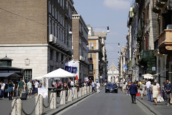 אזור המדרגות הספרדיות וויה קונדוטי ברומא משובץ בחנויות יוקרתיות של מעצבי על