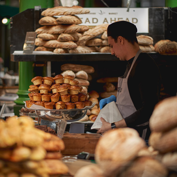 דוכן לחמים ומאפים בשוק בורו בלונדון | צילום: Paolo Paradiso / Shutterstock.com