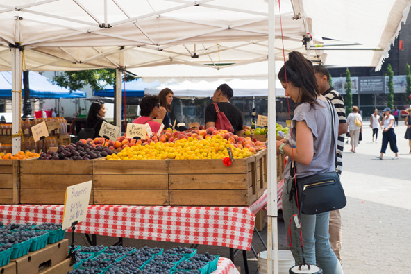 זהו כנראה שוק האיכרים המפורסם ביותר ברשימה. השוק הניו יורקי מתקיים ארבעה ימים בשבוע, אבל זה של שבת הוא הגדול מכולם. יש בו 80 דוכנים שמציעים תוצרת עונתית מגוונת – מ-88 זנים של תפוחים, דרך דומדמניות ועד מינים שונים ומשונים של ענבים. בנוסף לאלה אפשר למצוא פירות ים ובשרים, ואם זה לא מספיק לכם, תוכלו לרכוש בשוק ביצי יען שגודלן משתווה לשש ביצי תרנגולת, ואפילו ביצי אמו, אותו עוף אוסטרלי המזכיר במראהו יען וכמותו גם הוא חסר יכולת תעופה.