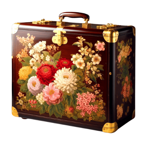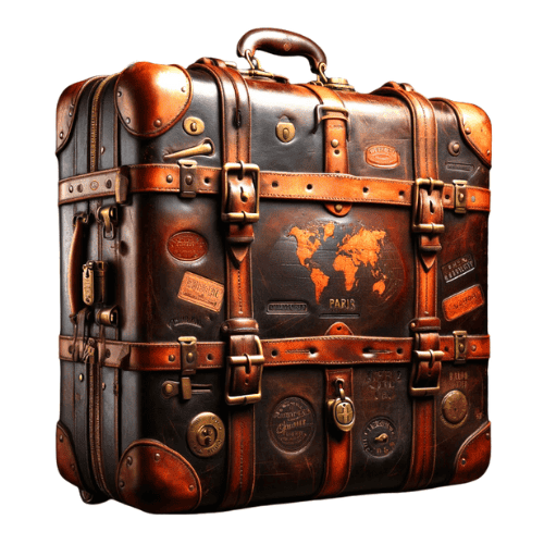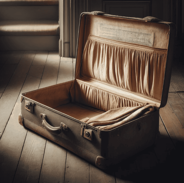 "דמיין מזוודה בינונית בגודלה, אולי בערך 60 על 40 סנטימטרים. היא עשויה מעור איכותי בצבע חום כהה, עם גוון עשיר ועמוק שמעיד על גילה וניסיונה. העור מחוספס מעט, עם שריטות ופגמים עדינים פה ושם, אבל הם רק מוסיפים לקסם האומנותי שלה. המזוודה מעוטרת בפרזול מוזהב – אבזמים, רוכסנים ומנעולים בעלי ברק עדין. הם נראים וינטג', אולי אפילו ענתיקה, אבל עדיין חזקים ותקינים.