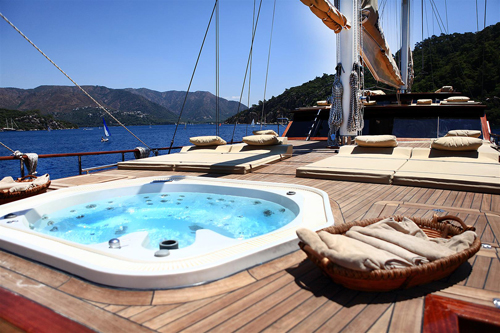 יום 2: אגא לימאני – מפרץ אקינצ'יק ודלייאן בשעות הבוקר המוקדמות מפליגים למפרץ אקינצ'יק – פלא טבע המבורך ביופי עוצר נשימה, אוכלוסייה מצומצמת ושלווה וחוף קטן ונחמד בקרבת מקום. מסלול של 2 קילומטרים הנמתח לאורך רצועת החוף מוביל לנמל קטן ממנו יוצאות סירות לעיירה דליאן, שמאופיינת בנוף יפהפה ובעולם חי עשיר. על החוף יש מגוון אפשרויות לפעילויות ספורט ימי, כולל סירת בננה וסקי מים. ניתן להצטרף לסיור מודרך בדליאן – המעוניינים יקבלו מידע נוסף במקום על מסלול הסיור. עוגנים במפרץ אקינצ'יק לארוחת ערב וללינה. יום 3: מפרץ אקינצ'יק – בוזוקייל (לורימה) ובוזבורון ממפרץ אקינצ'יק מפליגים לעתיקות העיר המבוצרת לורימה, קרוב לחצי האי מרמריס. משם ממשיכים לכפר בוזבורון, שידוע בתעשייה המשגשגת של ייצור ובניית יאכטות גולט. באזור זה נמצאים טובי בעלי המלאכה בתחום וכן העץ האיכותי ביותר לבניית יאכטות גולט מרשימות. עוגנים בבוזובורון לארוחת ערב ולינה. יום 4: בוזבורון – האי סימי מוקדם בבוקר מפליגים לאי סימי, בו נמצא הנמל היפה ביותר בכל יוון. בסימי כמעט ואין כלל בנייה מודרנית וכל הבתים הישנים היפהפיים השתמרו היטב. נשארים באי סימי לארוחת ערב ולינת לילה.  בין טיול אחד למשנהו אפשר להתרווח בג'קוזי מול הנוף