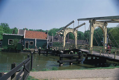 בצוהרי היום השלישי עזבנו את העיר והמשכנו בתעלת נורד הולנד צפונה, תוך חציית נמל אמסטרדם. כשירד הגשר המתרומם שלפנינו, עצרנו לארוחת צהריים. ירדנו מהסירה וגילינו פינות חמד, ובהן תעלות צדדיות ואגמים זעירים. בינתיים חזר שומר הגשר מביתו, החנה בנחת את אופניו ונפנף לנו שהוא מוכן להרים את הגשר. מרוב עיסוקים והתרחשויות פספסנו את הגשר המתרומם הבא, שירד עד למחרת. שוב קשרנו את הסירה, הורדנו את האופניים ויצאנו לבדוק את השטח. מעט אחרי הגשר התגלתה לעינינו העיירה היפהפייה מוניקנדם, שבה תעלות, גשרים, כנסיות ונמל נפלא, עם המון מפרשיות וסירות עץ מסורתיות עתיקות. עשרות הסירות העתיקות האלה עוגנות ממש בשפת הרחוב, ומשמשות עד היום לצורכי תיירות ודיג. נשארנו ללון. בבוקר יצאנו לטיול אופנים בנמל המתעורר לחיים. ב-9:00, השעה שבה הגשר מורם, המשכנו לאדם, עיירה ימיביניימית, שהתפרסמה בזכות גבינותיה. שומר חייכן במעיל סגול הרים עבורנו את הגשר הראשון. בגשר המתרומם הבא ראינו אותו שוב. הלה נפנף בידו, עצר את התנועה, שכללה בעיקר ילדים שחזרו מבית הספר, והרים את הגשר. המשכנו בתעלה צרה, העוברת בין גינות מטופחות, וראינו בשביל הסמוך את איש הגשרים רוכב על טוסטוס ומלווה אותנו. זו היתה תחושה מאוד אינטימית, שנציג העיירה מלווה אותנו ופותח, במיוחד בשבילנו, את כל חמשת גשרי העיירה. לאחר מילוי מים בסירה, התארגנו לטיול אופניים, הפעם ארוך יותר, לעיירת הדיג הסמוכה פולנדם. יצאנו – מי ברגל ומי באופניים – לטיול דרך העיירה לאורך תעלה, דרך השדות אל הסכר הגדול, שייבש את הזוידרזי (הים הפנימי) והפך אותו לאיזור חקלאי פורח. במסגרת הפרויקט הוקם דייק גדול (כ-90 מטר רוחבו), שסגר חלק מהמים ויצר מערכת אגמים פנימיים. מאוחר יותר יובשו בהדרגה חלק מהאגמים, ובסופו של התהליך הממושך נוספו להולנד יותר מ-1,000 קילומטרים רבועים של שטח מיובש. כמעט כל האנשים בפולנדם, הנראית כעיירת צעצוע, היו לבושים וצבועים בכתום, דגלים כתומים התנופפו וההתרגשות היתה גדולה. היום מתקיים משחק כדורגל גורלי בין הולנד לאיטליה. הילדים מצטרפים לחגיגה. קונים כובע כתום, מניפים ידיים וצועקים "קדימה אמסטר-דם"! כולם הופכים לחברים שלנו, איש הגשרים מבחין בנו, מנפנף ומבקש שכשנגמור לאכול נגיד לו, והוא ירים את הגשר. סיימנו לאכול ונפרדנו ממרים הגשרים, תוך איחולים שננצח במשחק. המעבר מתחת לגשר המתרומם הבא אמור היה להתאפשר עד 19:00, אבל לכבוד המשחק, כל הולנד ותעלותיה הושבתו מ-18:00. עגנו בתעלה צדדית, בשולי פארק רחב ידיים וריק מאדם. כמו בכל פארק בהולנד, גם כאן יש פינת חי, גני הרפתקאות, תעלות, גשרים וטחנות מיניאטוריות. כשהחשיך, חזרנו "הביתה". סמוך לכיכר, בבית שקילה ישן, שוכר מוזיאון הגבינה. במוזיאון אפשר ללמוד על ההיסטוריה של הכנת הגבינות ועל חיי הכפר באיזור . מאלקמר המשכנו בתעלת זאן אל זאנס, איזור המפורסם בטחנות הרוח שבו. בחרנו לעצור בנקודה הכי ציורית בתעלה, מתחת לטחנת רוח ירוקה ולה כנפיים אדומים ולבנים. הסתבר לנו שאנו עוגנים ממש בלב המוזיאון הפתוח זאנסה סחאנס המשחזר כפר הולנדי טיפוסי מהמאות ה-17 וה-18. כל המבנים הנמצאים במוזיאון שוחזרו או הועברו אליו ממקומות אחרים במחצית השניה של המאה ה-20.