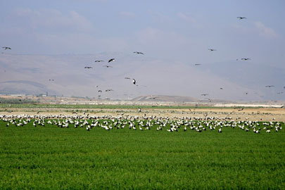 כמו בכל שנה בסתיו, כשמרימים את העיניים למעלה אפשר לראות בשמיים להקות ענקיות של ציפורים נודדות. ישראל נמצאת על ציר הנדידה של הציפורים, בנתיב היבשתי שמקשר בין אירופה ואסיה בצפון לאפריקה שבדרום, מה שמושך אליה מיליוני ציפורים מדי שנה. חלק מהציפורים רק חולפות בארץ בדרכן לאפריקה, כמו החסידות, וחלקן מגיעות לארץ בסוף הסתיו או בראשית החורף ונשארות בה עד ראשית האביב, כמו העגורים והאנפות. אתר הצפרות הכי מפורסם בישראל הוא עמק החולה, אבל יש בארץ לא מעט אתרי צפרות נוספים שבהם אפשר להתרשם ממגוון רחב של מינים. כולם אתרים יפים שמהווים יעדי טיול מעניינים בכל עונה, אבל בסתיו ובחורף, עם בוא הציפורים, יש לביקור בהם ערך מוסף. שמורת עין אפק שמורת עין אפק משתרעת על שטח של כ-660 דונם, ובהם מגוון של מקורות מים – נחל הנעמן, ביצות ובריכות מים יפות, כל אלה מהווים בית לצמחי מים כמו נימפאה תכולה וגרגר הנחלים ולצמחיית גדות ענפה. גולת הכותרת היא הטיול על גשרי העץ שצפים על המים. בחורף, כשמפלס המים עולה, השמורה מהווה מקלט למינים רבים של עופות מים שחורפים בשמורה, כמו דיות, חסידות שחורות (שהן נדירות יותר מהחסידות הלבנות), קורמורנים גמדיים, דוחלים שחורי גרון, אנפות אפורות שקיננו בישראל עד ייבוש החולה וכיום הן רק חורפות בישראל, אדומי חזה וגם עיט צפרדעים, מין נדיר שנמצא בסכנת הכחדה עולמית. בעולם כולו יש בסך הכל כ-1,500 פריטים של עיט צפרדעים, מתוכם כמאה פריטים חורפים בישראל. לא רק ציפורים אפשר לפגוש בשמורת עין אפק. יש בה מינים נוספים של בעלי חיים, כמו שפמנונים, צבי ביצה, דרבנים, חתולי ביצה וגם עדר של ג'מוסים שהובאו לשמורה מעמק החולה. אזור הכנרת אחת הדרכים המהנות ביותר להתרשם מהציפורים הרבות שמגיעות לכנרת היא בשיט צפרות במימי הכנרת. שייט כזה מתקיים במעבדה השטה, שיוצאת להפלגות בכנרת במהלך פסטיבל חורף של ציפורים (ראו בהמשך) וכן במהלך חגים וחופשות. מי שגונב את ההצגה במהלך השייט הם השחפים, בהם שחף האגמים ושחף צהוב רגל. השחפים מתקבצים סביב הספינה ומלווים אותה בהמוניהם לאורך השייט. אפשר לזרוק להם פרורי לחם והשחפים, שניחנים ביכולות תעופה מרשימות במיוחד, תופסים את הלחם באוויר. הנועזים במיוחד חוטפים אותו היישר מכף היד שמושטת לעברם.