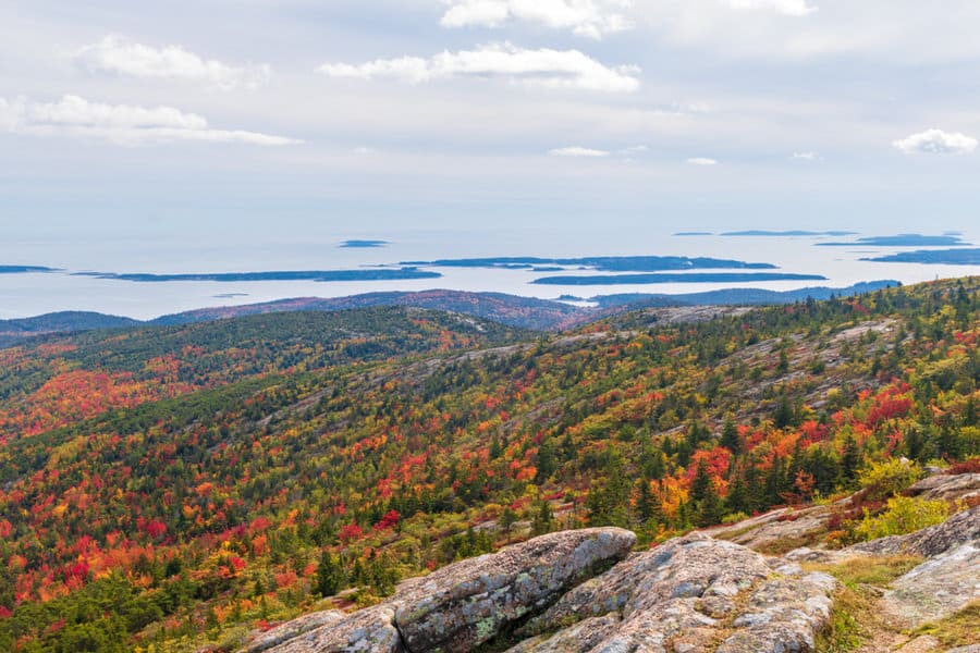 שום כתבת שלכת לא תהיה שלמה בלי ניו אינגלנד, שנחשבת למלכה הבלתי מעורערת של טיולי השלכת. אמנם ניתן לראות שלכת יפה בניו אינגלנד גם במרחק נסיעה קצרה יחסית מניו יורק, בקונטיקט או במסצ'וסטס, אבל אנחנו ממליצים לכם להצפין ולהרחיק עד הפארק הלאומי אכדיה ( Acadia National Park). הפארק מפורסם בהרים, באגמים ובקו החוף סלעי, ובסתיו מתווספים לכל אלה הצבעים החמים של היערות, שהניגוד בינם לבין האוקיינוס האטלנטי שלמרגלותיהם יוצר מראה דרמטי במיוחד. אחד המקומות המוצלחים ביותר לצפייה בשלכת בפארק הוא מפסגת הר קאדילק.
