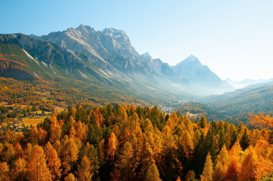 המוני מטיילים נוהרים להרי הדולומיטים שבצפון איטליה בחורף כדי לעשות סקי ובקיץ כדי לטפס בהרים, אבל לא כולם יודעים שכדאי להגיע להרי הדולומיטים גם בסתיו. בעונה זו ההרים המשוננים, שמכוסים ביערות מחטניים ונשירים, מתכסים בשלכת נהדרת. האזור משובץ באגמים רבים, וכאשר ההרים המיוערים הצבועים בכתום וצהוב משתקפים במי האגמים, מתקבל מראה יפה במיוחד. אחד האזורים שכדאי לראות בהם שלכת הוא אזור עיירת הנופש האלגנטית קורטינה ד'אמפצו (Cortina d'Ampezzo), שראויה לביקור בכל עונה ולא רק בסתיו.