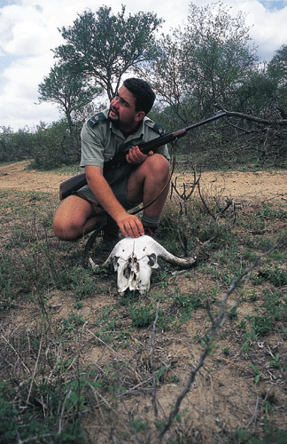ז'ואן פינטו נולד ביוהנסבורג (Johannesburg), דרום אפריקה. אבא שלו ממוצא פורטוגלי ואמו אנגלייה. מאז שהיה בן 17 הוא עובד כריינג'ר בשמורה הפרטית ת'ורניבוש, ויש לו את כל הגינונים הדרושים לאיש טבע. הוא נראה חזק מאוד, שזוף, מדבר בשקט ומקרין שלווה. פינטו מתייחס לתפקידו ברצינות תהומית, הוא רוצה להראות לאורחים את בעלי החיים שבגללם הגיעו לכאן – אבל לעשות את זה בדיוק לפי החוקים, ואלה אוסרים להפריע לחיות מעבר לגבול מסוים. אסור לעשות פעולה שתתפרש כהתרסה. אסור לפתוח פתח, ולו הקטן ביותר, לסכנה. העדות הברורה ביותר לזהירות הזאת היא דרך הנהיגה שלו. פינטו נוהג בג'יפ גדול, שקט מאוד, צבוע בצבעי הצמחייה, וכאשר הוא או הגשש שנוסע איתו מזהים בעלי חיים, הוא מדומם את הרכב ומשלב הילוך אחורי. הוא מצביע עבורנו, אלה שלא רואים שום דבר שלא מראים להם במפורש, על בעלי החיים בסבך הקרוב. בשלב הזה הוא גם מחזיק בדרך כלל ברובה ציד דו קני גדול, למקרה שמשהו ישתבש.  | | שמורת ת'ורניבוש. קרבה אינטימית עם בעלי החיים |
