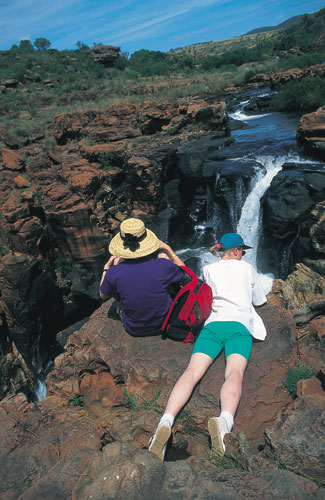 כמו סרט טבע, אבל במציאות בדרך אל כף התקווה הטובה (Cape of Good Hope), במפרצון קטן, יושבות על חוף הים כמה משפחות עם ילדים בלונדינים שמשחקים במים. במרחק חמישה מטרים מהם עומדת להקה של כ־50 פינגווינים על סלע. אף אחד לא מתרגש. הילדים צועקים זה אל זה. גם הפינגווינים צועקים משהו לא ברור ומדדים לצד השני של הסלע. מדי פעם יורד אחד מהם לשכשך במים ועולה חזרה. אין גדר, אין מכלאה, אין דמי כניסה או שלט הסבר. יש פינגווינים ואנשים שמבלים על אותו חוף. יש תיירים – אנחנו – שמצלמים בהתרגשות, כי הם קראו במדריך שאלה הפינגווינים הכי צפוניים על פני כדור הארץ. הפינגווינים לא קראו את המדריך הזה. הם רוצים דג טוב לארוחת הצהריים ושלא יבלבלו להם את המוח.בהמשך הכביש, כמה קילומטרים לכיוון הכף, עומדים שני אנשים וצופים במשקפת לעבר האוקיינוס. "מה אתם רואים?", שאלתי. "לווייתנים", ענהאחד מהם והושיט לי את המשקפת. זה נשמע כמו בדיחה. לקחתי את המשקפת וחשבתי שלא יפה לצחוק על אורחים שלא מבינים כלום. בחוסר אמון הצמדתי את המשקפת לעיניים וראיתי את ערוץ 8: שני לווייתנים מזנקים מהמים, מניפים זנב בצורת וי וצוללים חזרה, בערך 50 מטר מהחוף. "זאת העונה שלהם", הסביר לי בעל המשקפת. "תמיד הם באים לכאן בעונה הזאת. הנה שם, ימינה יותר, יש עוד שלושה". "אלה שנוסעים בכביש לא יודעים שיש כאן לווייתנים?", גמגמתי כשהחזרתי בחוסר רצון את המשקפת. הוא צחק. "מה אכפת להם מהלווייתנים?". ישבנו לאכול המבורגר במרפסת של הרכבל ליד הכף. הרכבל מוביל אל המגדלור ואל תצפית על שני האוקיינוסים, ההודי והאטלנטי, שמתמזגים בדיוק ממול. עננים הפריעו לראוּת, וחיכינו שיתבהר כדי שנוכל לצפות במגדלור הנמוך יותר, שנושא את שמו של ברתולומיאו דיאש הפורטוגלי, הלבן הראשון שהגיע לכף. רגע אחרי שקילפנו את הנייר מעל להמבורגר צלל עלינו מהגג בבון אלים. הוא נעמד על השולחן שלנו, פרע לעצמו את הבלורית וצרח משהו לא מובן. מלצר גירש אותו בתנועות ידיים רחבות וניסה להרגיע אותנו. הבבון עבר לשולחן הסמוך וחטף כריך אכול למחצה מידיה של ילדה בת שמונה. המלצר כבר נראה כועס מאוד. "כל יום אותו סיפור. כמה אוכל שנותנים לו – הוא לא שבע". הבבון הזה הוא חלק מהמקום. איש עוד לא הציע לסגור אותו בכלוב.  | | הצוקים מעל נהר בלייד. צעד לא נכון והכל נגמר | צילום: הנסיוהרג ריכטר |