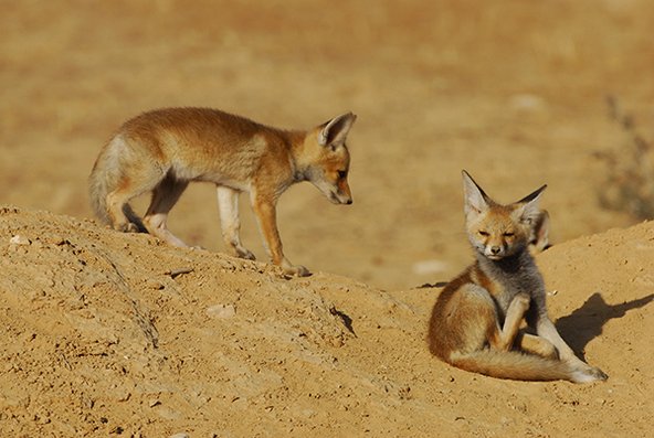 גורי שועל מצוי. מגון היונקים בשמורה כולל שועלים, זאבים, צבועים ועוד