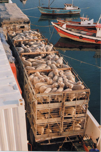 עגלים וכבשים מובלים בתנאים אכזריים מאוסטרליה למדינות המזרח התיכון לצורך שחיטה ופיטום. המאבק נגד המשלוחים רשם לאחרונה הצלחה בבית המשפט העליון פורסם 13.9.06 |