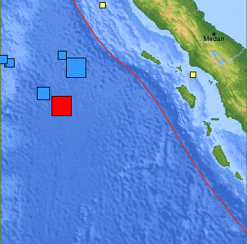 שתי רעידות אדמה אדירות, בעוצמה של 8.8 ו-8.2 בסולם ריכטר, התרחשו היום (ד') כ-500 ק"מ מחופי סומטרה שבאינדונזיה. רעידות נוספות, בעוצמה פחותה, הורגשו לאורך רוב שעות היום. הרעש העז הורגש במדינות רבות באזור, בהן תאילנד, דרום הודו וסינגפור, אולם נכון לכתיבת שורות אלו לא דווח על נפגעים. רעידות האדמה ליד אינדונזיה גרמו להיווצרות גלי צונאמי, שלא היו גבוהים במיוחד, ואזהרת הצונאמי שניתנה ב-16 מדינות באזור בוטלה. עם זאת, אזורי חוף במדינות כמו תאילנד וסרי לנקה פונו מתושבים ומתיירים עד שהמצב יתבהר סופית.
