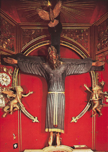 משחקי אור יפהפיים, והן נצנצו למרחוק. לאחר שירד הלילה, פוזרו צלבים עשויים נורות ניאון ירוקות ואדומות לאורך הרחובות הראשיים של העיר. האגדה ממשיכה ומתארת כיצד הוסתר הפסל במשך מאות שנים בשל רדיפת הנוצרים, עד שבמועד מסוים הונח על סירה ונשלח ללב ים. בדרך נס חצתה הסירה את הים התיכון, הצליחה לחמוק מעיניהם של שודדי הים והגיעה בשלום לחופי לוני (Luni), באיטליה של ימינו. משם הגיע הפסל במאה השמינית לעיר לוקה בעגלה שאותה הובילו כוחות נסתרים. האגדה המקומית יודעת לספר גם על ניסים רבים שעשה הצלב הקדוש. כך, למשל, מסופר על הזמר הנודד ונוטו די פרנסיה, שעלה לרגל אל הצלב הקדוש, אך בשל עוניו הרב לא היה באפשרותו להציע ולו מנחה קטנה. הוא החליט להביע את דבקותו ואת אמונתו באמצעות נגינה בקתרוס (lute). רחמיו של ישו נכמרו על הטרובדור העני, והוא גרם לכך שאריח כסף ייפול למרגלותיו. זמן קצר אחר כך, כשנמצא האריח בכליו של הטרובדור, הוא נעצר בעוון גניבה וחילול הקודש, אך בסופו של דבר זוכה וניצל בזכות התערבות שמימית. במהלך ימי הביניים הפיצו סוחרי לוקה וטרובדורים צרפתים את אגדת הצלב הקדוש. פולחן הפסלון הטוסקני הגיע לכל מדינות אירופה, במיוחד לצרפת, לפלנדריה ולאנגליה, ומסופר כי מלך אנגליה וויליאם השני אף נהג להישבע בשמו: "למען הדיוקן הקדוש של לוקה"