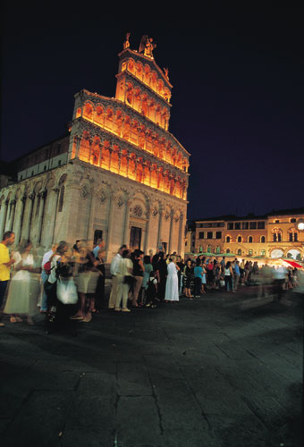 הליגורים, אחריהם ישבו בה האטרוסקים, ובמאה השנייה לפני הספירה היא הפכה למושבה רומית. שרידי התוכנית הרומית – רחוב ראשי (קרדו) הנחצה על ידי רחוב רוחבי (דקומנוס) – ניכרים עדיין בעיר העתיקה, והכיכר היפהפייה, פיאצה דל אנפיתיאטרו (Anfiteatro), משמרת בצורתה את האמפיתיאטרון הרומי הקדום. מרשימות במיוחד חומות העיר: מעגל החומות הראשון נבנה על ידי הרומאים, השני הוא מימי הביניים והשלישי מהמאה ה־16. המעגל הרביעי, שבנייתו נמשכה יותר מ־100 שנה, הוא היחיד שהשתמר כמעט במלואו עד היום, והוא נמתח להיקף של יותר מארבעה קילומטרים. חומות העיר והשרידים נותרו על כנם בזכות תקופות השלום הארוכות שמהן נהנו תושבי העיר: לוקה נותרה עצמאית כ־500 שנה, עד כיבוש נפוליאון את העיר ב־1799 והקמתה, כמה שנים אחר כך, של נסיכות לוקה בהנהגת אחותו של נפוליאון, אֶליז. בשנת 1817 הפכה העיר לדוכסות תחת בית בורבון, ולבסוף נכללה בממלכת איטליה. ב־13 בספטמבר 1999 היו רחובות העיר מלאים אדם. בעת השקיעה, אל מול השמש, נראו רוכבי האופניים והולכי הרגל הרבים כצלליות בעלות מסגרת של זהב, ורצפת הבזלת השחורה, המסותתת בסירוק אלכסוני האופייני ללוקה, הפכה לפס זהב בוהק. קצת לפני רדת החשכה הדליקו עובדי העירייה את הפתילות באלפי כוסות הזכוכית שנתלו על חזיתות הבתים והחנויות. שקיפותן של הכוסות באור האחרון של היום והאש הדולקת בהן יצרו