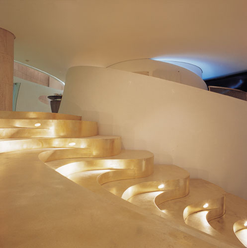 ברחבת הכניסה למוזיאון תל־אביב נעשה שימוש במנורות המשתקפות ברצפת השיש המבריקה. השיש משקף את האורות עד שנדמה כי מקורם אינו בתקרה – כלומר, בשמים, אלא ברצפת האולם – באדמה. באדמה שעליה חי האדם המודרני, שאלוהיו אולי נפלו, אבל הדבר לא מנע ממנו להוסיף ולבנות מקדשים והיכלי פולחן.