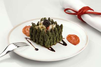 מתפריט המחלקה הראשונה: ראשי אספרגוס עם קוויאר | באדיבות אייר פראנס