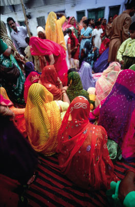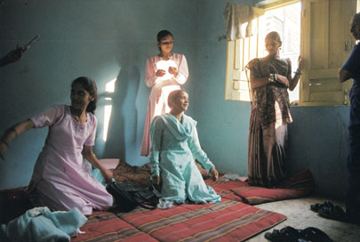 הודו, מדוראי, נשים עובדות בשדה בהודו היה קל יותר לעבוד. הצילום היה הרבה יותר נינוח. פתאום ראיתי קבוצה של נשים שעבדו בשדה, נשים מכל הגילים. אני אוהבת מאוד את התמונה הזאת כי צריך לגלות אותה. על פי רוב אני מעדיפה צילומים שבהם לא קולטים את הכל במבט ראשון. בתמונה הזאת זה חזק במיוחד כי בהתחלה זה נראה כמו שני עצים ואז זה הופך מסתורי: מי הנשים, באיזה כיוון הן הולכות ניו יורק, תחרות נגינה בנבל מוזיקה היא עולם חשוב בשבילי. בדיוק היתה תחרות נגינה, וצילמתי את האישה הזאת לפני הקונצרט. נבל נחשב כלי נשי אבל הוא מכאיב מאוד באצבעות כשהמיתרים חותכים בהן. יש פה איזו אילוזיה כי על פניו הוא נראה רך וענוג נגה שדמי הודו, אודייפור, תהלוכת חתונה זה היה שבוע של חתונות, ובמקרה נקלעתי לאירוע. הצבעוניות היתה מדהימה. בדרל כלל לא רואים כל כך הרבה צבעים. הרעיון של הצילום היה להדגיש את הצבע. זו תמונה עמוסה מאוד, והרעיון היה להכניס כמה שיותר צבע. אני אוהבת מאוד לצלם נשים. בעיני נשים תמיד מביעות משהו, בעיקר בעולם השלישי, שם הצבעוניות בלבוש והזיהוי המיני צודגשים כל כך, אפילו אם אצלם אותן מאחור.