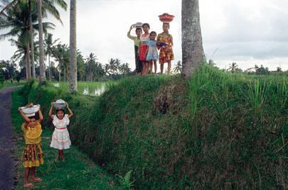 ליאן סילברמן אינדונזיה, באלי, בצד הדרך בטיול אופנוע בין שדות אורז באי באלי נעצרתי ליד קבוצת ילדות עם מנחות, כנראה בדרך לטקס. צחקקנו והחלפנו מבטים. תיעדתי רגע זה במצלמתי, וכך חרוטים בזיכרוני עד היום מבטן ופניהן של הילדות. כצלמת מתעדת ואמנית פמיניסטית חברתית עניין אותי תמיד השיח הנשי ודרך כך צילום של נשים. הייתי שמחה לראות יותר נשים משולבות במדיום הצילום העיתונאי-מגזיני הנשלט על ידי ההגמוניה הגברית.