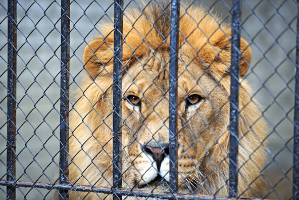 אריה לבן צעיר מאחורי הסורגים. אי אפשר שלא להבחין בסבל הניבט מעיני האריות בכלובים | צילומים: שאטרסטוק