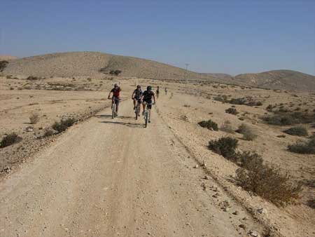 | • קושי המסלול: קל. • משך המסלול: שעתיים. • מפה: מפת סימון שבילים מס' 15 הימים עדיין חמים, אבל גם במהלך ספטמבר אפשר ליהנות מרכיבה על אופניים באזור רמת הנגב. נצא לטיול קליל וקצר שמתאים לשעות אחר הצהריים. נצא מהשער של קיבוץ משאבי שדה לכיוון כביש מס' 40. כ-110 מטר לפני הגשר שמעל נחל רביבים נפנה ימינה בדרך עפר שפונה צפונה ולאחר מכן מזרחה. דרך זה עוברת בין מטעי חוחובה וזיתים השייכים לקיבוץ. הדרך ממשיכה בקער הטופוגרפי בין קמר ירוחם לבין הקמר של הר צבוע ושחר שמצפון לנו. בשיפולי הר שחר יש שתי מחצבות גדולות. כאשר נגיע מול המחצבה השניהי נראה מעין מחשוף של סלעים לבנים. זה הזמן לעזוב את דרך העפר הראשית ולרכב דרך שטח רמוס בזחלי טנקים ושפכי חציבה עד שנגיע אל מוקד העניין העיקרי של טיולנו: חמוקי הקרטון. מחשוף סלעי בקרטון נמצא במין מכתש קטן. הסלעים סדוקים, והסדקים חוצים זה את זה ויוצרים צורות מעניינות. הסדקים מלאים בקלציט הקשה יותר מן הקרטון ולכן הוא נותר בולט מעל פני השטח. המים יצרו נוף חמוקים שמזכיר את נוף חמוקי ניצנה המפורסמים יותר. בתוך האתר נותר בולט מעין צוק ציורי. ניתן לעלות למעלה ויהנות מצפית על האזור כולו. אם נתבונן מזרחה נראה את הבסיס הצבאי ואם נתבונן צפונה נראה את הר שחר. נמשיך ברכיבה מזרחה, במהלכה נחצה ערוצים קטנים ואת דרך העפר הראשית, עד שנגיע לדרך עפר המטפסת על המורדות הצפוניים של נ.ג 398. לאחר טיפוס קצר הדרך יורדת לואדי ובו כמה עצי פרי. נמשיך במורד הואדי, נחלוף על פני קיר צור נמוך ונמשיך ברכיבה מהנה עד שנחזור למישורים בואכה קיבוץ משאבי שדה. |