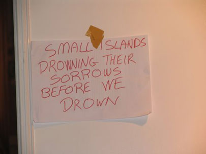 זה היה ריקוד המחאה והייאוש של נציגי ברית מדינות האיים הקטנים, הפזורים באוקיינוסים שעל פני הגלובוס. חלקם עלולים על פי התחזיות לסבול בשנים הקרובות מהצפות ולהיעלם כליל מתחת לפני הים הגואה בשל התחממות כדור הארץ. היו שם נציגים מטובלו, ומאיי שלמה, המאוימים באופן מיידי, ואחרים – ממיקרונזיה, מפולינזיה, מהקריביים ומעוד פינות על פני האוקיינוסים, שבאו להזדהות.