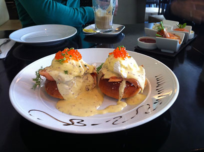 אפשר להתחיל בתיאור של החדרים היפים, המעוצבים בקפידה ובאיפוק מעורר השראה, או בתיאור של הרחוב התל אביבי הקטן, שנמצא בלב-לבו של המרכז התרבותי של העיר. אבל אנחנו, שטחיים שכמותנו, התחלנו את היום בארוחת בוקר במלון ברדיצ'בסקי והתאהבנו. ולכן נתחיל שם. הבריא שבנו דבק בחביתת חלבונים וסלט ישראלי, הגרגרנית (כותבת שורות אלו, למען הגילוי הנאות) הלכה על כל הקופה עם ארוחה הקרויה Special B. מה יש בה שכה שבה את הלב? בריוש טרי, פרוסות עבות של סלומון מעושן, מעליהן שתי ביצים עלומות, רוטב הולנדייז עשיר ונפלא ומעל הכל – ביצי קאווייר אדום. כל ביס תענוג, ולעזאזל הדיאטה. לקינוח חלקנו מגדל פנקייקס שרק מהמראה שלו אפשר היה להתעלף – פנקייקים שמנמנים, צרובים מבחוץ ורכים מבפנים, וביניהם שכבות של פירות טריים, קרם פרש ורוטב מייפל איכותי. למי שיטען כי זוהי לא בהכרח הדרך המומלצת לפתוח את היום, נאמר כי היא בפירוש דרך מענגת עד מאוד.