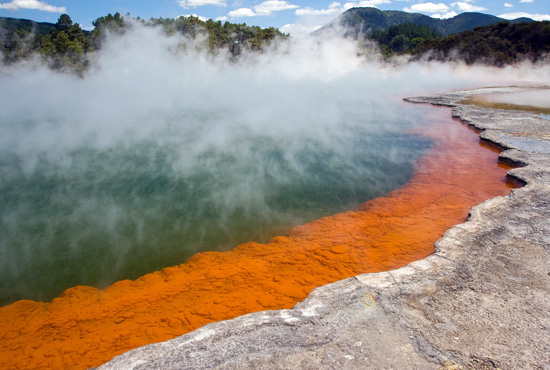 בין כל אלה, לא קל לבודד מקום אחד שראוי לתואר "וואו", ובכל זאת נעז ונציע את בריכת שמפניה הנמצאת בחגורת האש של ניו זילנד, במרכז האי הצפוני. בין הערים רוטורוואה (Rotorua) וטאופו (Taupo), באזור עשיר במעיינות חמים וגייזרים מתפרצים בריכת שמפניה (Champagne Pool) בולטת בצבעיה הבלתי הגיוניים. היא נקראת כך על שום המראה המבעבע שלה, כאילו היתה כוס ענקית של שמפניה – תוצאה של פליטת פחמן דו חמצני.