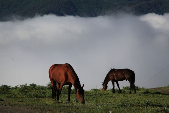 למרגלות הפסגה הגבוהה בקווקז, שחארה, כ- 5,080 מ' מעל פני הים
