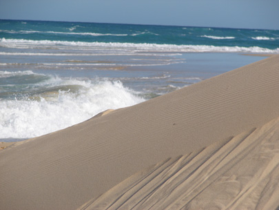 דיונות חול לבנות גולשות אל מי האוקיינוס
