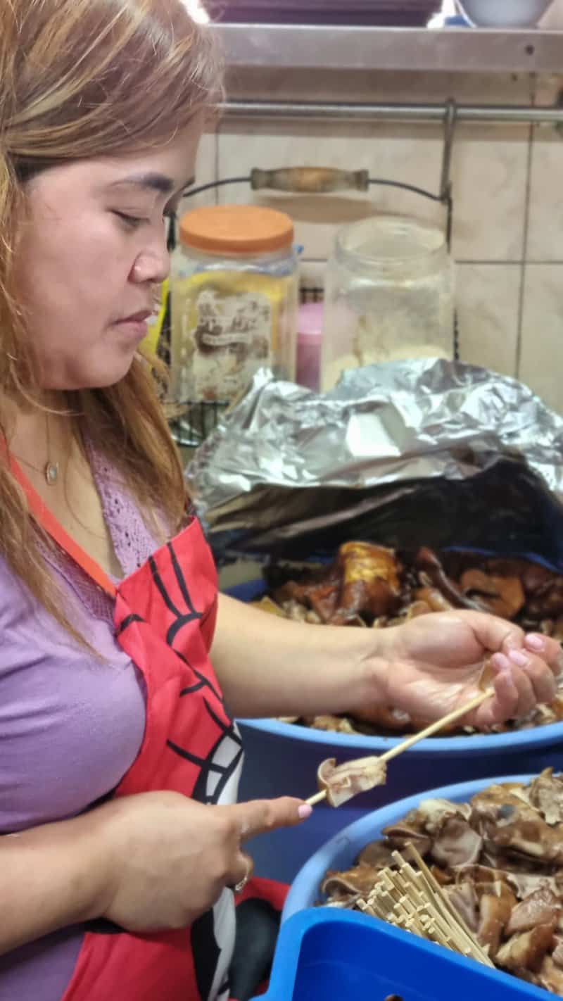 כדי להכניס אותנו לאווירה וכיאה לסיור קולינרי, היא מוזגת לנו לימונצ'לו שהכינה בעצמה ומכבדת בממתק פיליפיני מבטטה סגולה מהשוק הפיליפיני, ובה בעת מביאה את סיפור השכונה.