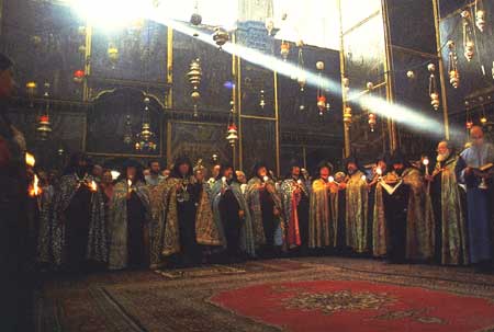 כל יום בשש בבוקר ובשלוש אחר הצהריים נפתחת הכנסייה למשך חצי שעה, ודרך פתח צדדי נכנסים עשרות תלמידי הסמינר וכמה כמרים. אין בכנסייה חשמל ובשעות אלה התאורה הטבעית נעטפת בתחושת מסתורין, בשל נרות השמן והכותרות הקורינתיות והצלבניות של העמודים, המעוטרות בבעלי חיים. אבל האווירה המרשימה ביותר היא בתקופת החגים, בעיקר בחג הפסחא. אז אפשר לשמוע את המוסיקה הארמנית המיוחדת ולראות את הלבוש הצבעוני החגיגי, שגוניו נעים בין אדום לסגול ולוורוד.
