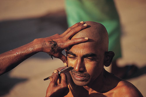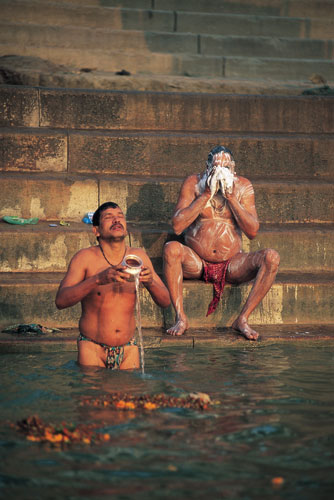 נדמה שכל החיים בעיר מתנקזים אל הנהר. כל מיני דברים קורים כאן כל הזמן. חתונות: זוגות ביום חתונתם יורדים לנהר, לקבל את ברכתה של האלה גנגא. הם עורכים פוג'ה (טקס נתינת מנחה), לבושים במיטב מחלצות החתונה. כביסה: את הבדים הסחוטים פורשים על המדרגות היורדות אל הנהר. רצועות רצועות של סארי בשלל צבעים ססגוניים. ניקיון: סאדהו (נזיר פרוּש, שוויתר על בית קבוע) חופף את שערותיו המדובללות בבוץ. גם לבוץ הנהר מיוחסות איכויות של ניקוי וריפוי. אבל איך הוא ייפטר מעוגת הבוץ שיושבת לו עכשיו על הראש?