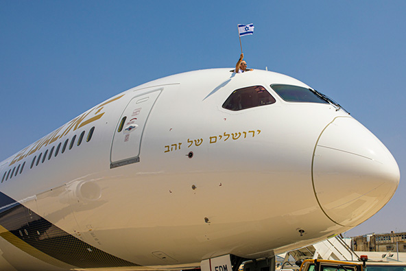 מטוס הדרימליינר "ירושלים של זהב" לקראת הנחיתה בנתב"ג | צילומים: עופר חג'יוב