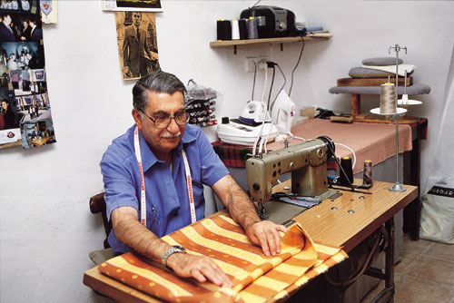 | "נולדתי ב־1935, בימי הבריטים, בתוך הקהילה הסורית הקטנה בירושלים. את בחרותי עברתי תחת שלטון ירדני ובבגרותי אני בירושלים הישראלית. מאז נערותי אני מתפרנס מעבודת חייטות, כבר יותר מחמישים שנה במקצוע. עבדתי עם שגרירים, קונסולים וידוענים למיניהם בתפירת חליפות בהזמנה מיוחדת. היום אף אחד כבר לא מחפש חליפות תוצרת יד, הכל מתועש והחליפות זולות בהרבה, אבל אני לא יכול לסגור את החנות. היא קיימת מ־1959, וזו הפינה הקטנה והנעימה שלי. תשתה בינתיים, התה מתקרר. תערובת צמחים כזאת לא שתית מעולם, נכון? "ב־1980 נבחרתי להיות מוכתר הקהילה הסורית־אורתודוקסית בירושלים. בירושלים חיים כ־550 בני אדם השייכים לקהילה. בבעלותנו כנסייה אחת, מן העתיקות בירושלים ובעולם כולו, כנסיית מארק הקדוש. אנשי הקהילה מתייעצים בי, ואני מייצג את הקהילה גם בפני העולם. אף אחד לא משלם לי עבור שירות זה, זה בהתנדבות. ובעניין החייטות, היום אני עושה רק דברים קטנים, בגדים לתהלוכות ולכנסייה, אבל את החנות הזאת לא אסגור לעולם". |