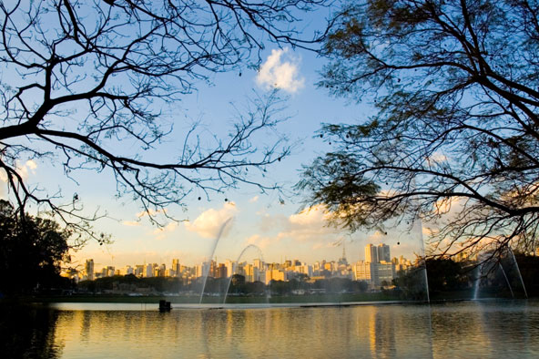 קו הרקיע של סאו פאולו כפי שהוא נראה מהאגם בפארק איבירהפוארה