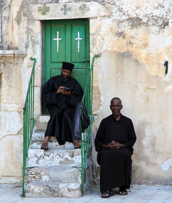 המרכז הסופי זאוויית א-שאזלייה, בעיר העתיקה של עכו, הוקם ב-1862 ובמשך שנים שימש כמרכז העולמי של המסדר הסופי השאזילי. בהמשך עבר המרכז הרוחני של המסדר ללבנון, אבל בשנים האחרונות המרכז בעכו עובר עבודות שיפוץ נרחבות שבסיומן תשוב עכו להיות המרכז הרוחני של המסדר המיסטי. מראהו של המבנה מבחוץ לא מרמז על הפאר וההדר שבפנים: כיפה מרהיבה, עמודי שיש צבעוניים, שטיחים ועבודות אמנות וגנים עם בריכות ומזרקות בסגנון אנדלוסי הם רק חלק ממה שנחבא בתוך מבנה האבן בעל הכיפה הכחולה. ויותר ממה שהעינים רואות, מרתק להכיר את הצד הרוחני והמסתורי שטמון באמונה הסופית. המנזר האתיופי מעל כנסיית הקבר, ירושלים כנסיית הקבר בירושלים היא אחת הכנסיות החשובות בעולם, שכן בה על פי האמונה הנוצרית ישו נקבר לאחר שהורד מהצלב ומקברו זה הוא קם לתחייה. אבל למרות שהכנסייה מוכרת מאוד, לא כולם יודעים שעל הגג שלה, במקום שנחשב כתחנה התשיעית של דרך הייסורים, יש כפר זעיר. זהו מתחם של נזירים אתיופים שממוקם על גג קפלת הלנה הקדושה בכנסייה ומעוצב ככפר אתיופי. חדרי המנזר בנויים מחימר, צבועים בצבעים עזים ומרוהטים בסגפנות. .jpg) המנזר האתיופי מעל כנסיית הקבר, הבנוי ככפר אתיופי מסורתי | צילום: יעקב שקולניק