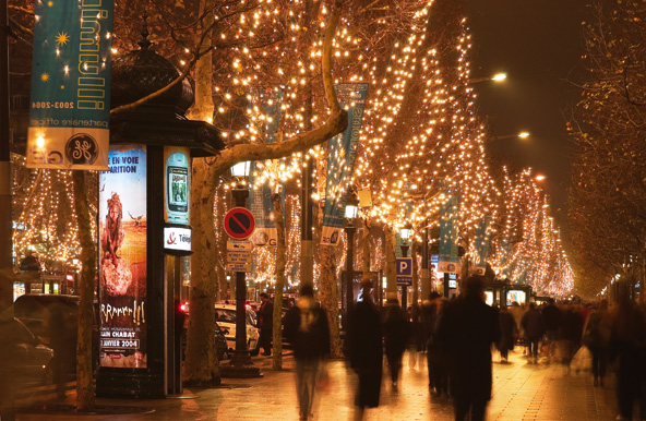 שטרסבורג בחורף, מוארת בתאורה מקסימה | צילום: Philippe DE REXEL , Strasbourg Tourist Office  עץ אשוח בשטרסבורג, המכונה "בירת חג המולד של צרפת" פריז, צרפת קלישאות אינספור נכתבו על פריז בחורף, וכולן נכונות. העיר הזו, הרומנטית בכל עונה (מלבד, אולי חודש אוגוסט), מצדיקה יותר מכל את תדמיתה הרומנטית בעונת החורף. גם בלי שלג, שיורד פה רק ימים ספורים מדי חורף, יש בפריז החורפית את כל מה שצריך כדי שתעמדו משתאים אל מול כל היופי הזה, בעיקר בתקופה שלפני חג המולד. החל מחודש נובמבר, שדרות פריז, ובעיקר שדרת השאנז אליזה, מוארות בתאורה מיוחדת, והעצים גם הם מקושטים ומוארים בשלל פנסים זעירים. גם כיכר ונדום, שדרות מונטיין היוקרתיות וקתדרלת נוטרדאם מוארים באורות החג. חלונות הראווה גם הם עוטים חג, בעיקר בבתי הכלבו הגדולים כמו גאלרי לאפייט ופרינטמפס. כשמוסיפים לאלה את שווקי חג המולד, את זירות ההחלקה על הקרח (אלו פועלות במיקומים שונים בעיר כמו השאנזאליזה, בית העירייה, השאנזאליזהוהטרוקדרו) ואת הערמונים הקלויים שנמכרים בכל פינת רחוב, מתקבלת חגיגה חורפית אמיתית. .jpg) רחוב מואר בפריז, לקראת חג המולד | צילום: Paris Tourist Office – David Lefranc