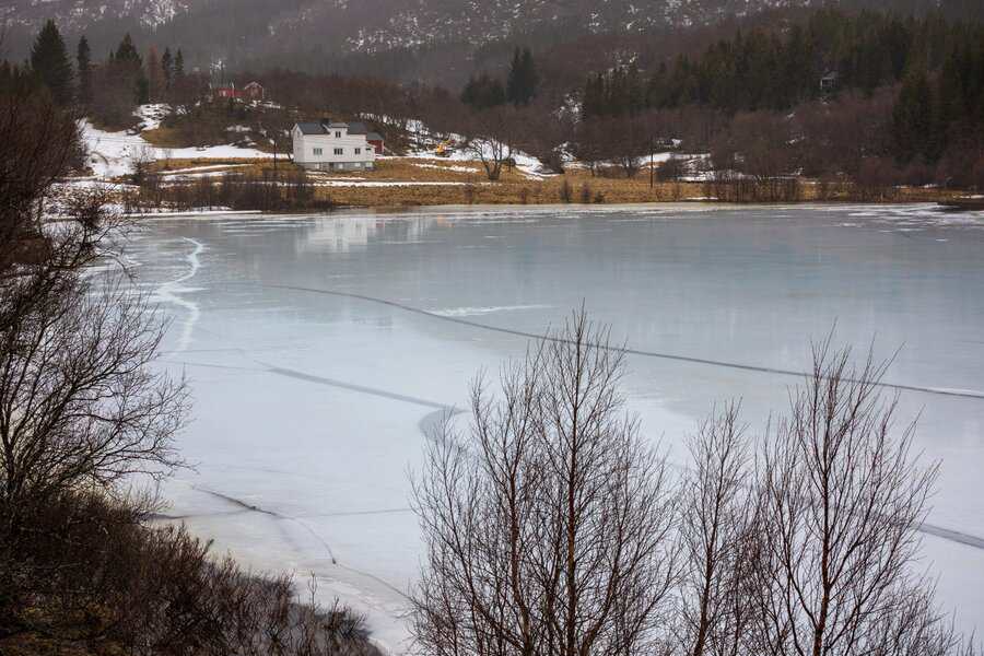 בהמשך היום נסענו צפונה לאורך החופים המחורצים והמפרצים השחורים, חולפים על פני מתקנים ליבוש דגי בקלה ואגמים קפואים. חוואי מקומי שחלף על פנינו ראה שאנחנו מתפעלים מאגם מכוסה בשכבת קרח, והמליץ לנו לנסות ללכת עליו, היות ו"העובי שלו 25 סנטימטר". החלטנו לוותר.