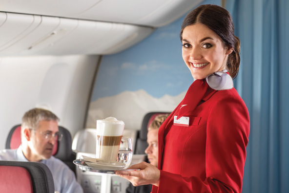 בטיסות ארוכות טווח של אוסטריאן איירליינס נוסעי מחלקת העסקים מתפריט קפה עשיר ומגוון