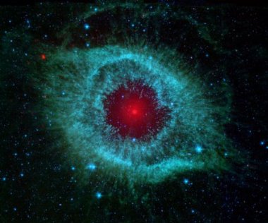 | ומה תגידו על התמונה הזו? זהו צילום של "ספיצר" טלסקופ חלל בתת-אדום שיודע לקלוט את אנרגיית החום שפולטים גופים לוהטים בחלל. האובייקט המצולם כאן היא ערפילית הסליל (Helix) שנמצאת בקבוצת מזל דלי. במרכזה נראה כוכב קטן ודחוס המכונה: "ננס לבן" שהוא כוכב קטן, לוהט ודחוס – שמש המצויה בשלבי חייה האחרונים. אולם מה שמעניין אותנו כעת זהו האור הקורן בתת-אדום מהכוכב המת, כנראה כתוצאה מהתנגשויות של כוכבי שביט המתנגשים פעם אחר פעם בחלקיקי הגז והאבק הקוסמי המצוי בכמויות אדירות מסביב. פרטים על האסטרופיזיקה של האירוע המדהים הזה כאן. אבל אל תלכו לפני שתציצו עוד רגע פנימה אל תוך תוכה של "העין" הקוסמית והמאובקת הזאת. |
