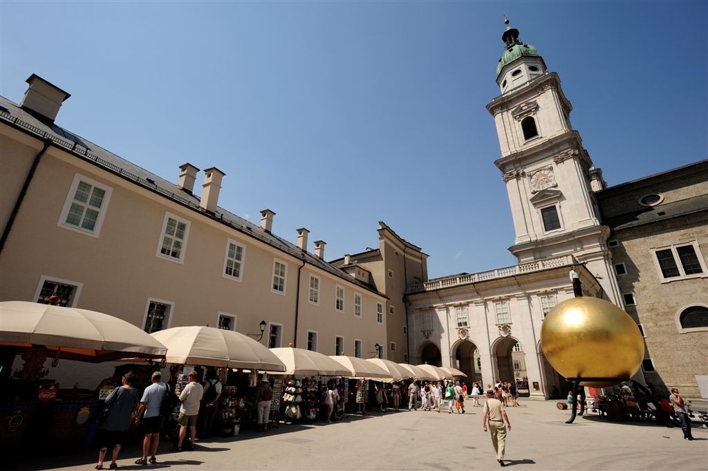 עוד כמה צעדים והגענו למתחם הקתדרלה. מרכז הכוח השלטוני של הנסיך ארכיבישוף בא לידי ביטוי במבנה מגורים ענק, שכיום משמש כגלרייה לתערוכות אומנות. ברחבת הקתדרלה ניצב פסל שנועד להאדיר את מוצרט ולהציגו כדמות גבוהה והרואית, בעוד שהאדם האמיתי היה קטן ממדים וגבורתו היתה בגאונותו המוסיקלית. בתוך הקתדרלה אפשר להתרשם מהכיפה העצומה המתנשאת מטבורה של הכנסייה. חדרים ובהם מזבחות קטנים מובילים אל המזבח המרכזי. עוגב ענק נמצא מעל הכניסה, ועוד ארבעה עוגבים קטנים נמצאים בחללה. העוגבים שונים בצלילם, ולעולם אין מנגנים בהם ביחד, אלא משתמשים בכל אחד מהם בהתאם לסוג המוסיקה שרוצים להשמיע.